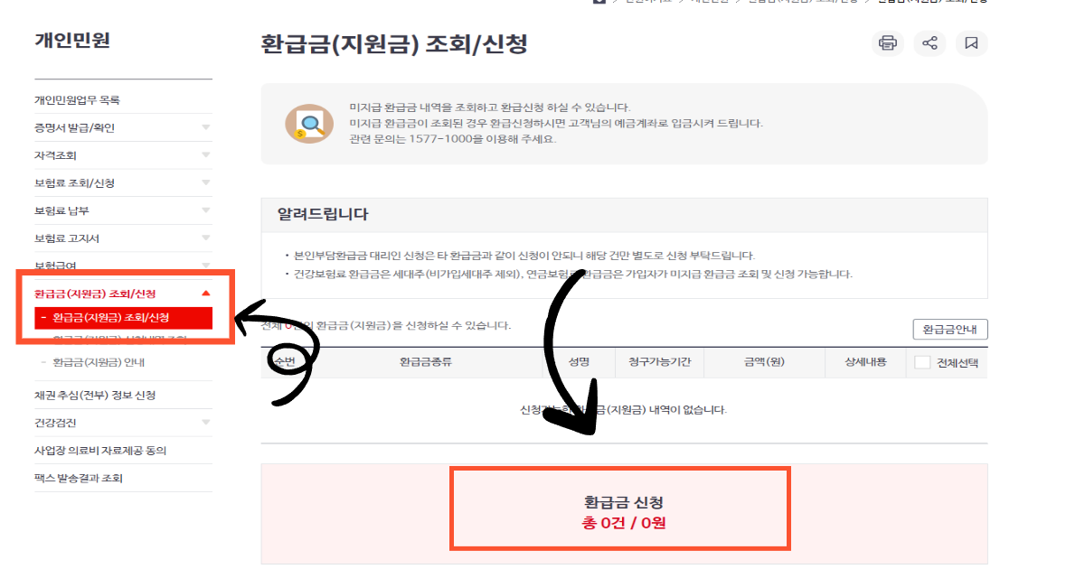 2. 환급금 (지원금) 조회/신청 을 클릭해주세요. 🍀