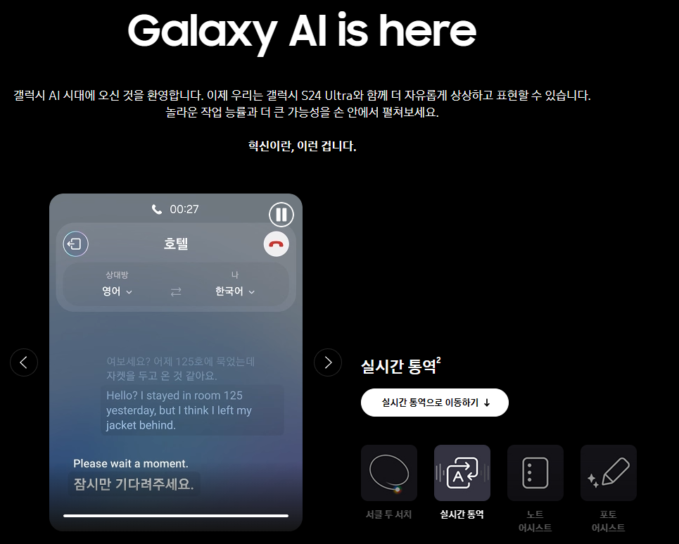 Galaxy AI 삼성 가우스가 탑재되어 서클 투 서치, 실시간 통역, 노트 어시스트, 포토 어시스트 등 다양한 AI 기능을 지원합니다.
