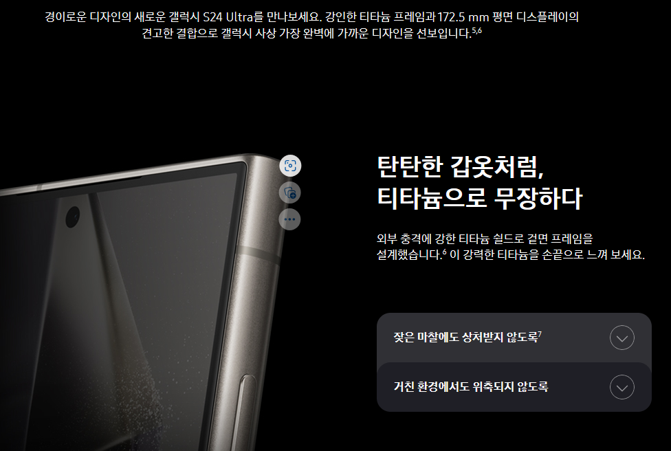 티타늄 프레임과 코닝 고릴라 글래스 빅터스2로 제작되어 높은 내구성을 자랑합니다.