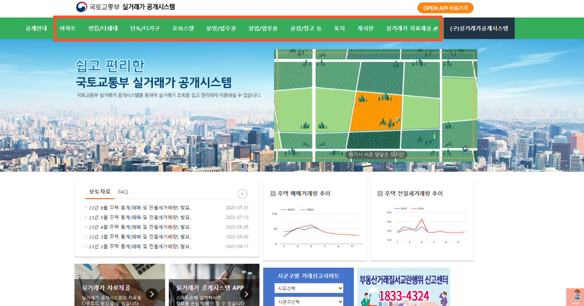 1. 국토교통부 실거래가 공개시스템 사이트 접속하세요.