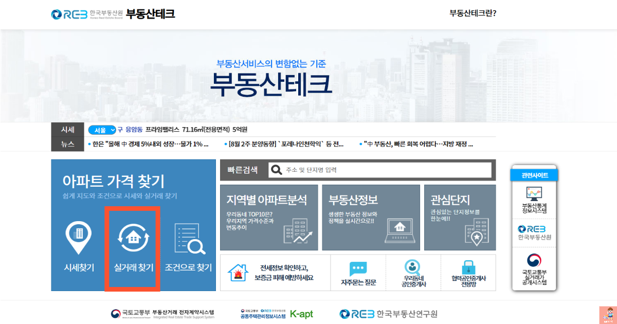 2. 빨간색으로 표시 된 실거래 찾기를 클릭해주세요.