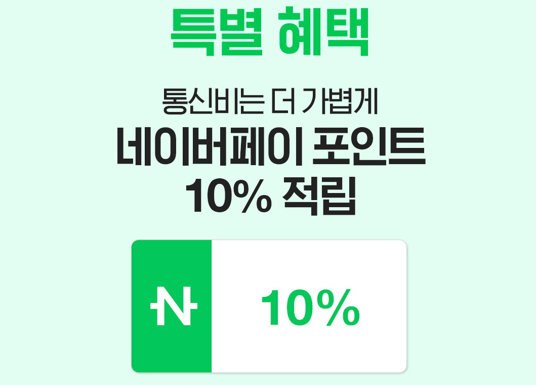 SK 세븐모바일 고객을 위한 특별혜택으로 통신비는 더 가볍고 네이버페이 포인트는 10% 적립됩니다.