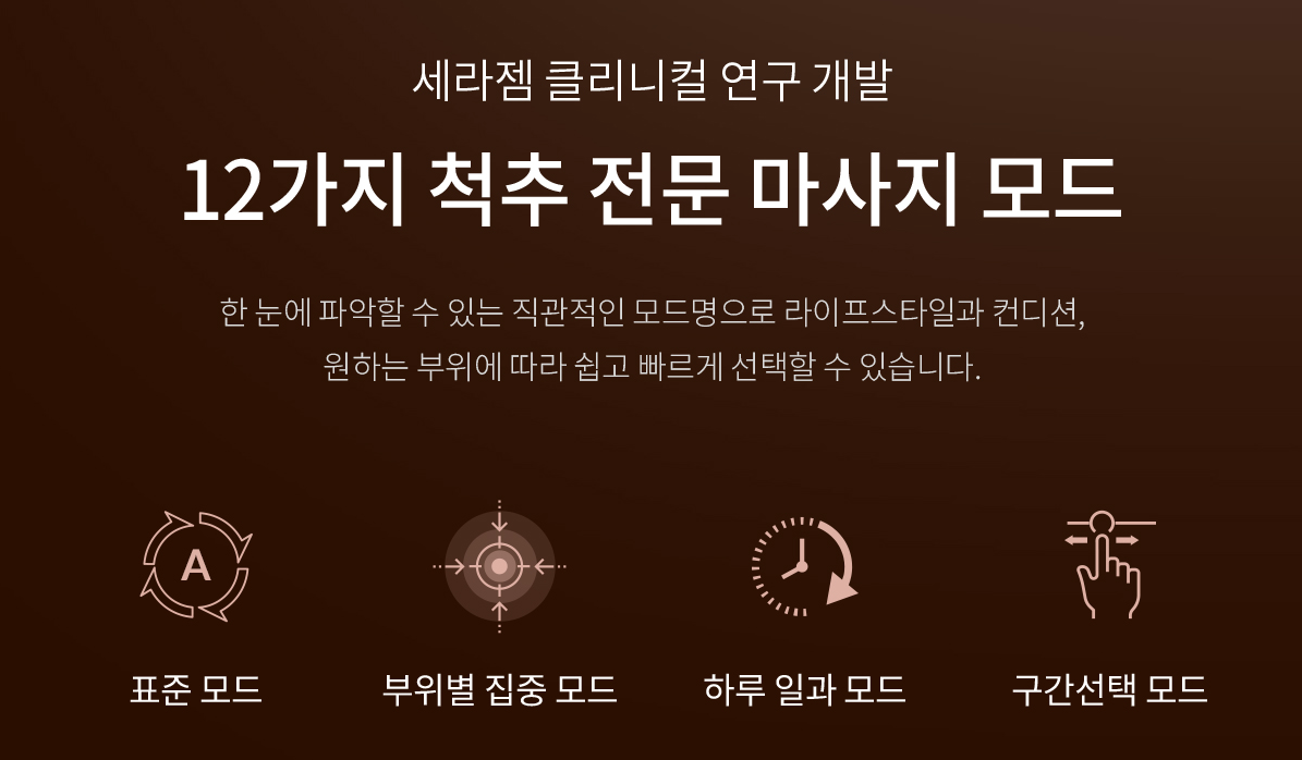 ◾ 원하는 척추부위 집중 마사지 마스터 모드를 특허 받았습니다.