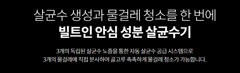◾ 실군수 생성과 물걸레 청소를 한번에 빌트인 안심 성분살균수기로 물걸레 청소가 가능합니다.
