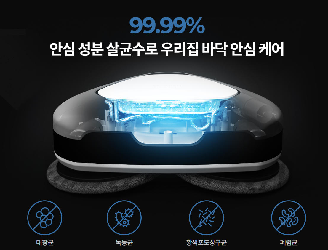 ◾ 유해 세균 걱정 없이 99099% 바닥을 살균합니다.