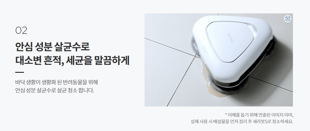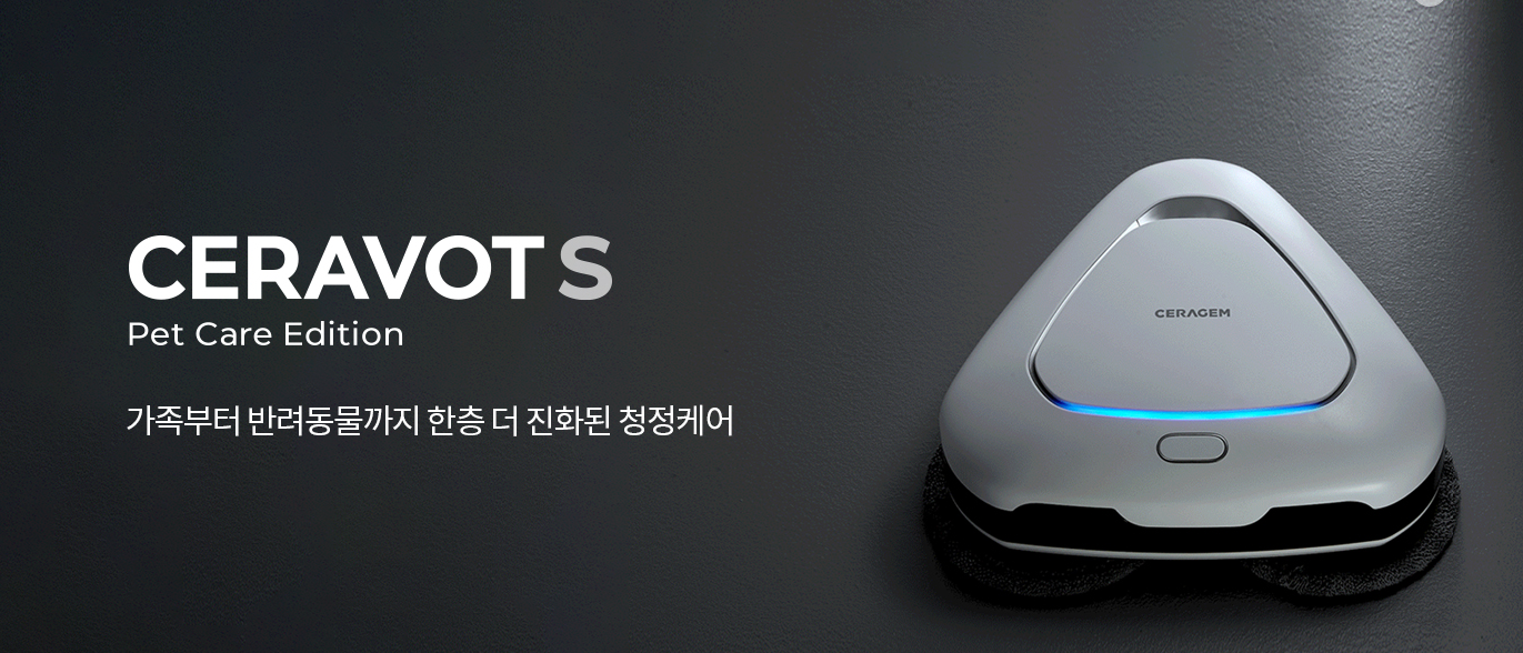 슈퍼 흡착 기술로 정전기 흡착기술 ,다운 프레스 & 트리플 스핀 과 스마트 살균, 그리고 스페셜 펫케어 전용 모드를 모두 이용 하실 수 있습니다. : 세라봇S