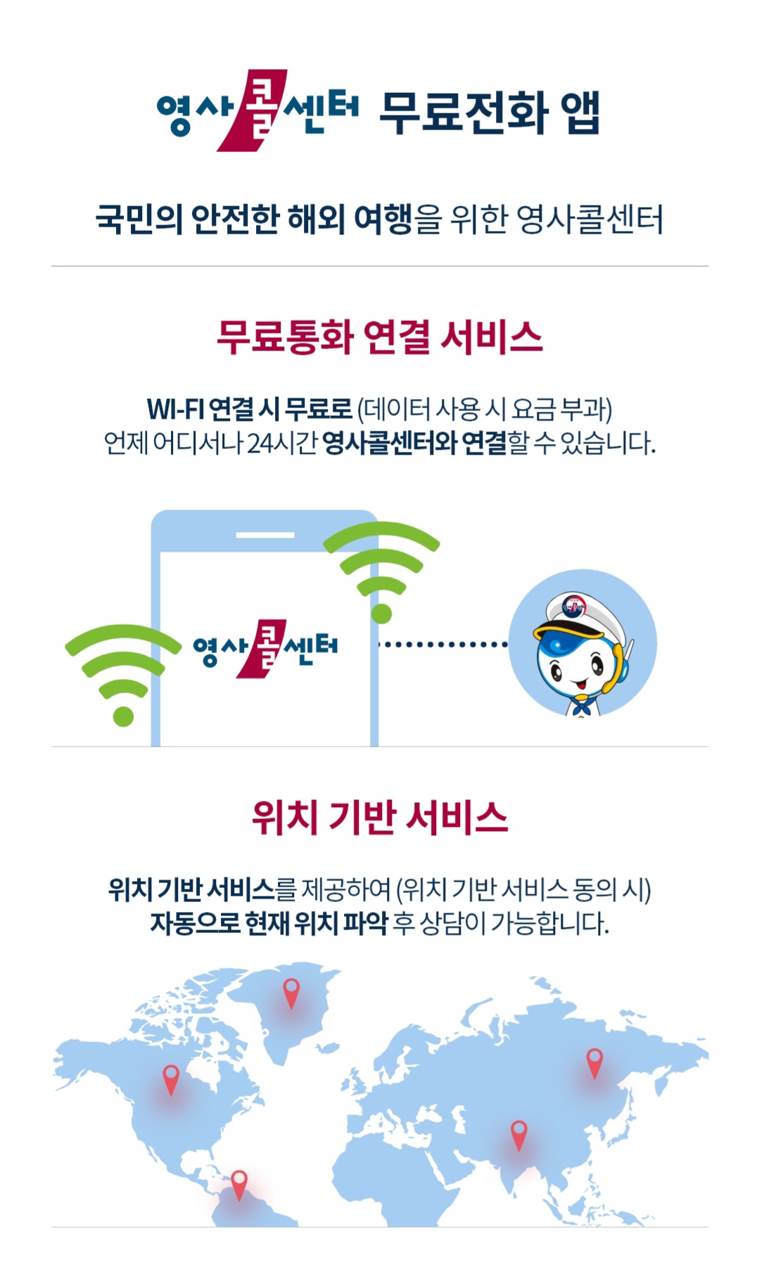 해외안전여행 애플리케이션을 통해 영사콜센터 서비스를 이용할 수 있습니다.